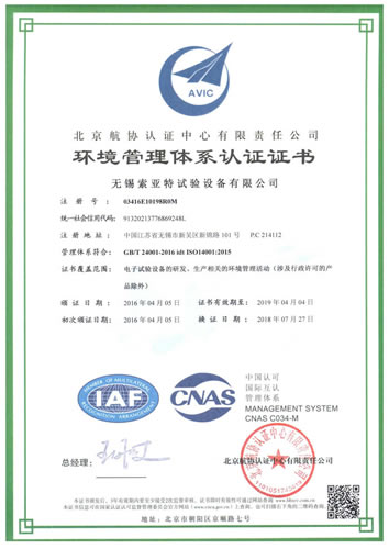 質(zhì)量管理體系認(rèn)證證書(GB/T24001-2004)